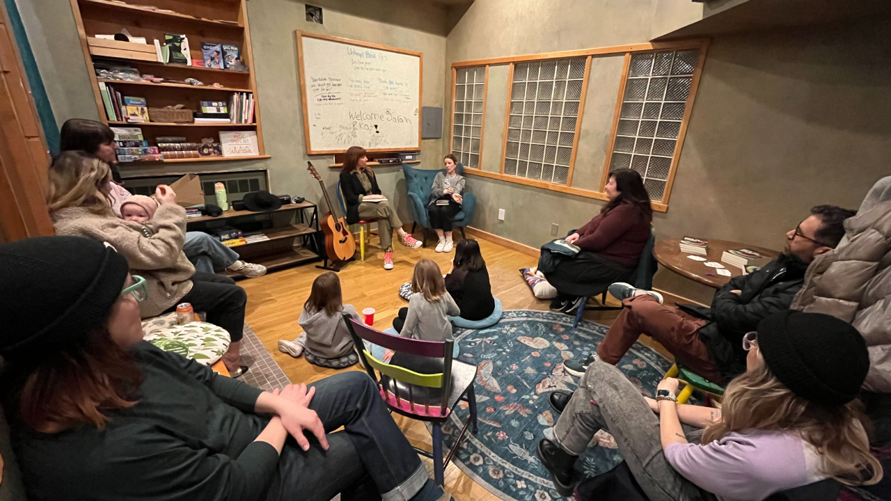 On a quiet Saturday in Philadelphia, Kat and I gathered in the back room of Midsummer Books with a handful of folks to talk about our work. We sang songs, shared "in process" versions of songs and their polished, mastered counterparts. We talked about the process behind recording and the evolution of songs. My daughters even came and snacked on crackers while listening to us sing and play the guitar.