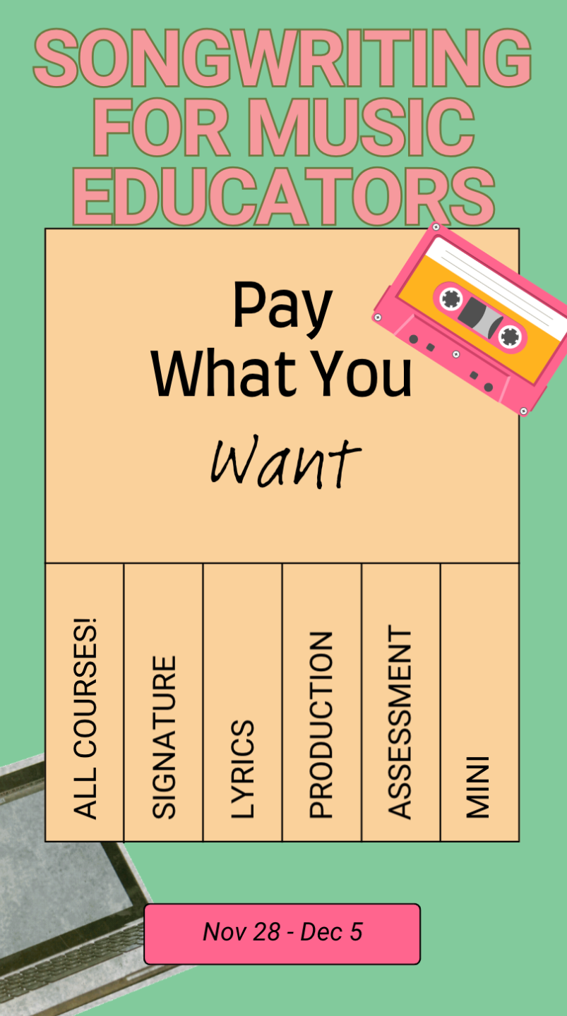 Available as both an eBook and physical paperback workbook, our book, this is a book designed for you and your students. Work alone or together as you explore your own songwriting journey!